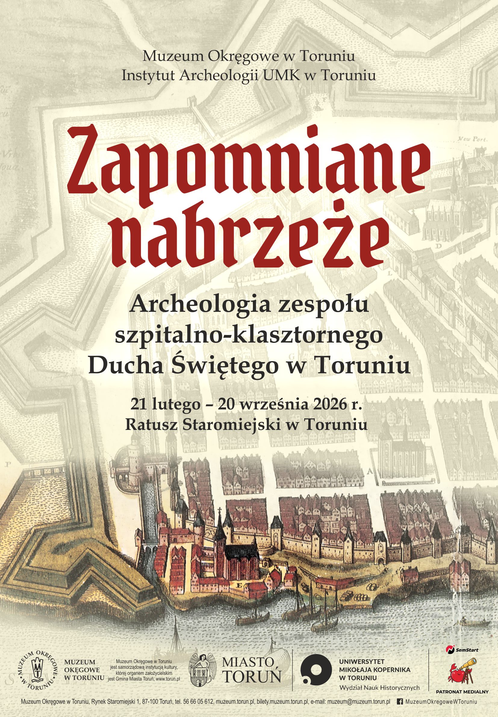Muzeum Okręgowe w Toruniu oraz Instytut Archeologii Uniwersytetu Mikołaja Kopernika mają zaszczyt zaprosić na wernisaż wystawy pt. „Zapomniane nabrzeże. Archeologia zespołu szpitalno-klasztornego Ducha Świętego w Toruniu” oraz towarzyszącą mu sesję popularnonaukową. Wydarzenie odbędzie się 20 lutego 2026 r. w Ratuszu Staromiejskim.